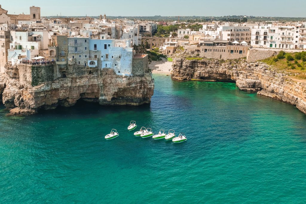 Experience an adventure along the Apulian coast by rental boat. Stop to swim in the crystal clear water, or sunbathe aboard the boat.